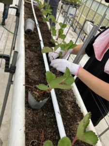 いちごの定植作業とは、いちごの苗を植えていく作業です。