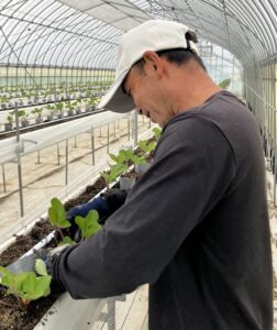 高設の定植が終わったら、次は土耕の定植に取りかかります。