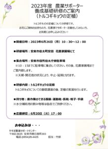 【トルコギキョウの定植 サポーター養成基礎研修 概要】———————–