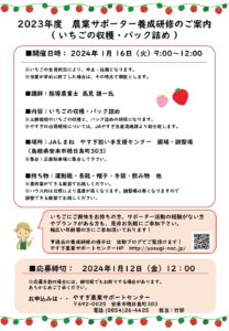 【いちごの収穫・パック詰め 農業サポーター養成研修 概要】———————–