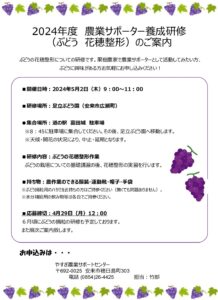 【ぶどうの花穂整形 農業サポーター養成研修 概要】———————–