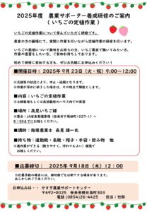 【いちごのマルチ張り作業 農業サポーター養成研修 概要】———————–